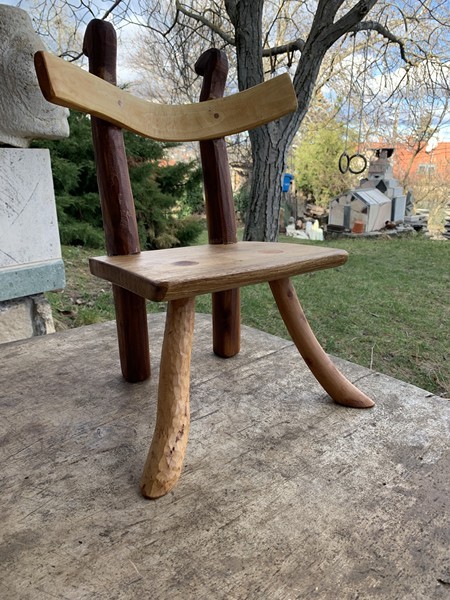 Megtanított a mesterségre, melyet aztán a magam igényei szerint folytattam tovább. Sok barátomat ajándékoztam meg ezekkel a kedves konyhai eszközökkel, egy fából faragott asztalokkal, székekkel, padokkal, s keltettem fel a figyelmét a gyári helyett a természetes anyagok iránt. A szerszámaim elkészítésében Nausch Géza grafikus, ötvös-iparművész, kardkovács barátom volt segítségemre, kit felettébb tisztelek és szeretek. Most még erős a fának vonzása, de érzem, kövek, ti következtek!